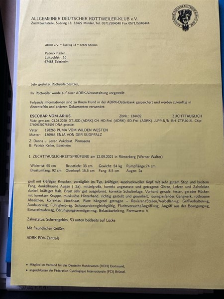PEDIGREE. PUMA VOM WILDEN WESTEN